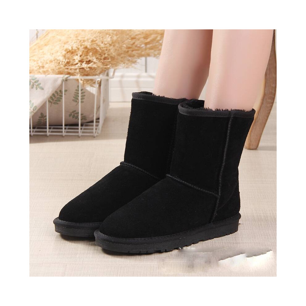 (Black, Length26cm/10.24in) Winter Men Womens Platform Warm Comfortable Fur Leather Snow Boots Sheepskin