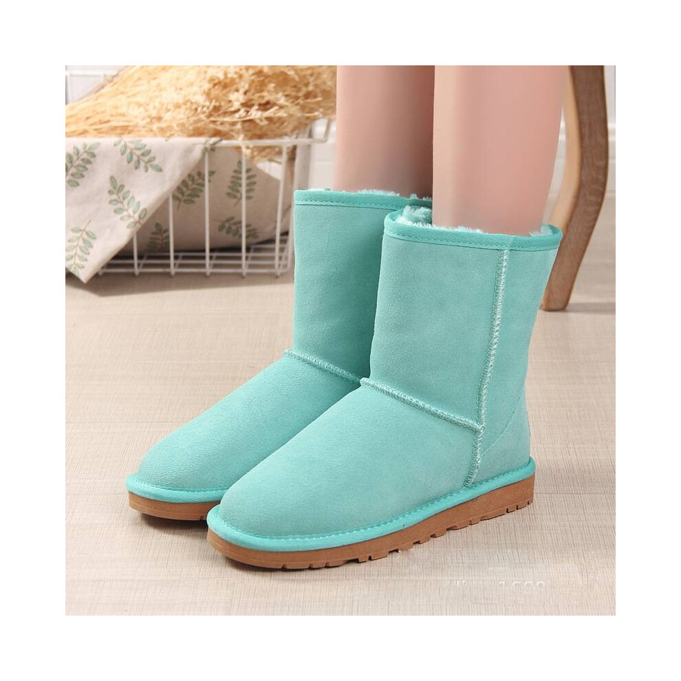 (Green, 39?Foot Length24.5cm/9.8in) Winter Womens Men Platform Warm Comfortable Fur Leather Snow Boots Sheepskin