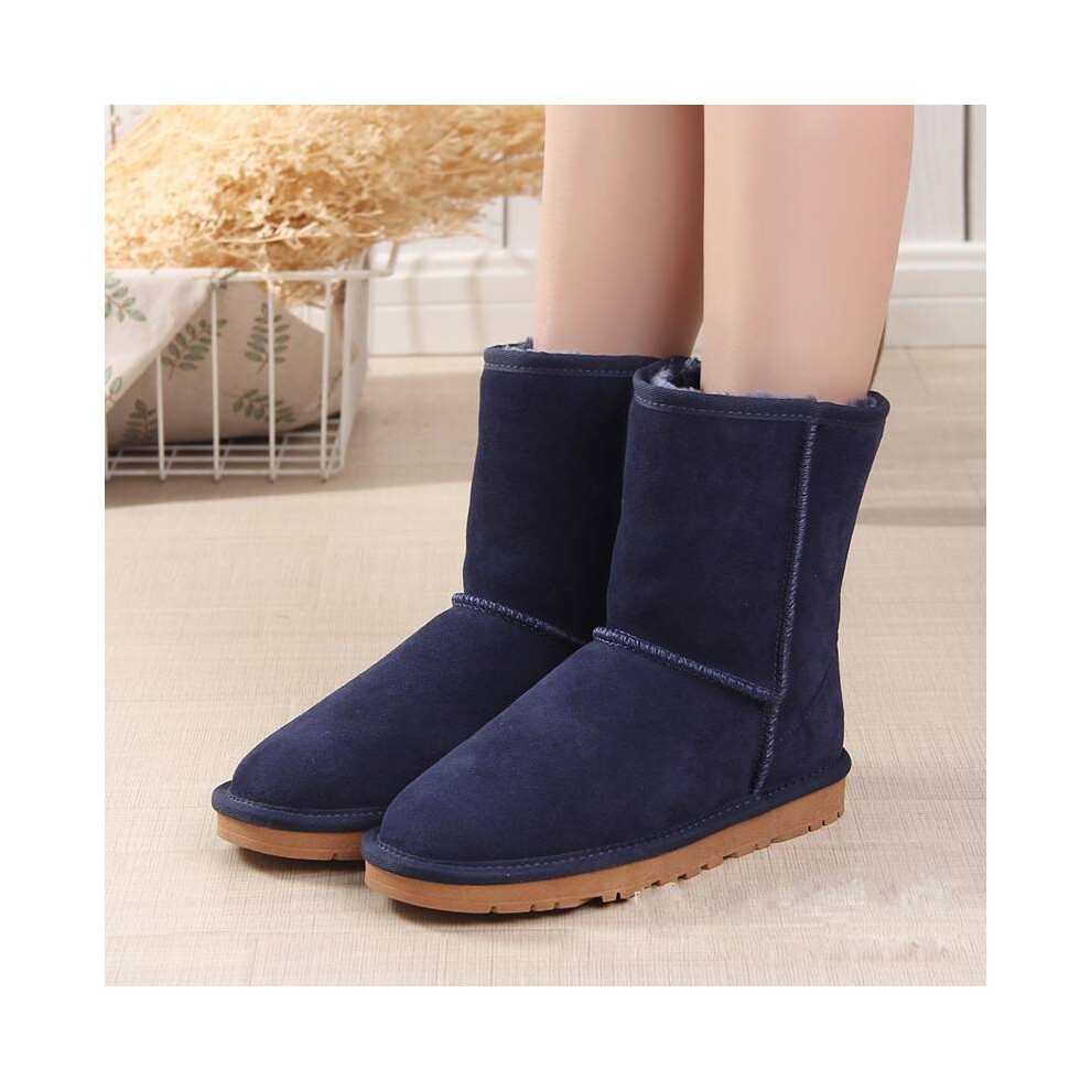 (Navy, 7 (Adults')) Women Winter Fur Leather Sheepskin Snow Boots Shoe