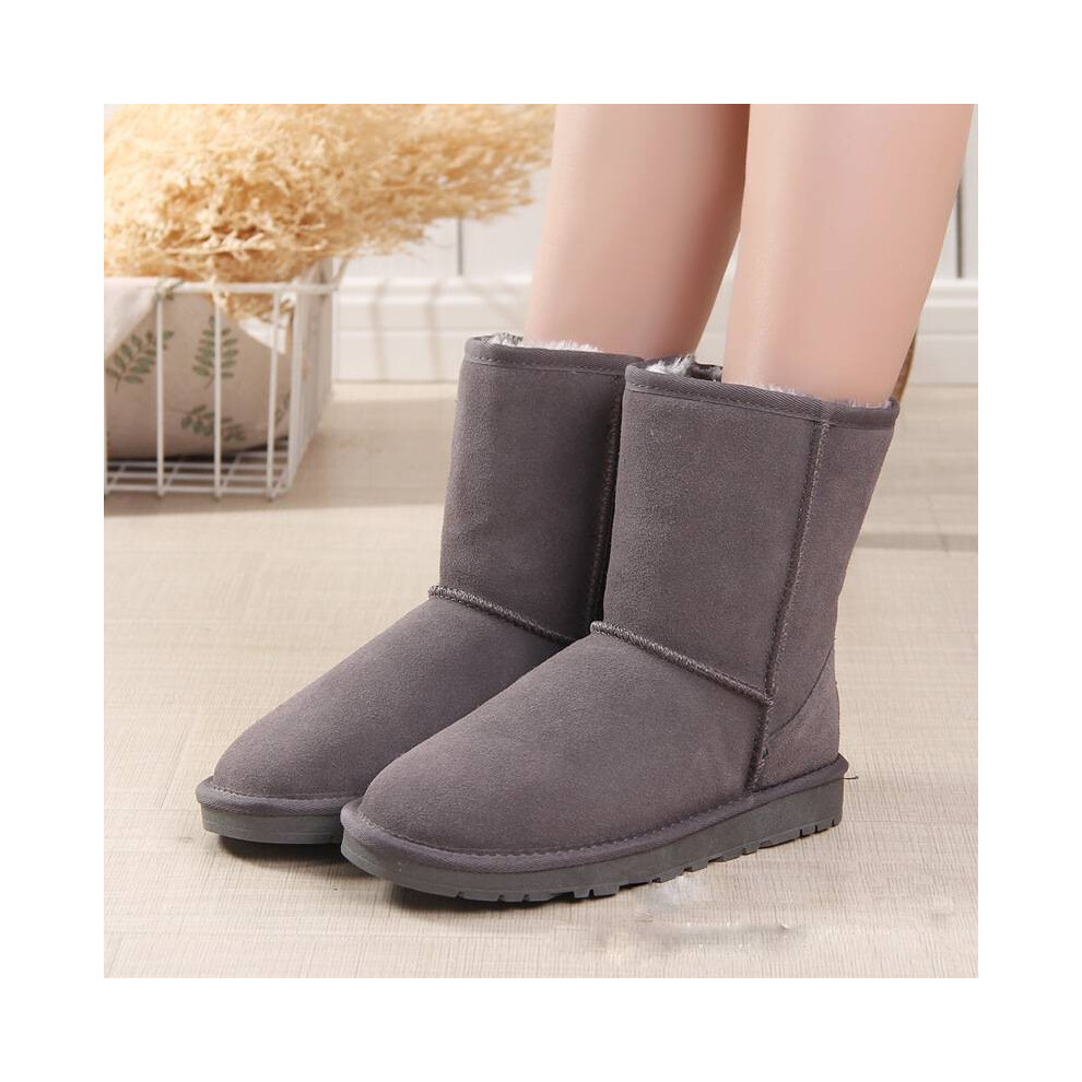 (Grey, 39Foot Length24.5cm/9.8in) Winter Men Womens Platform Warm Comfortable Fur Leather Snow Boots Sheepskin
