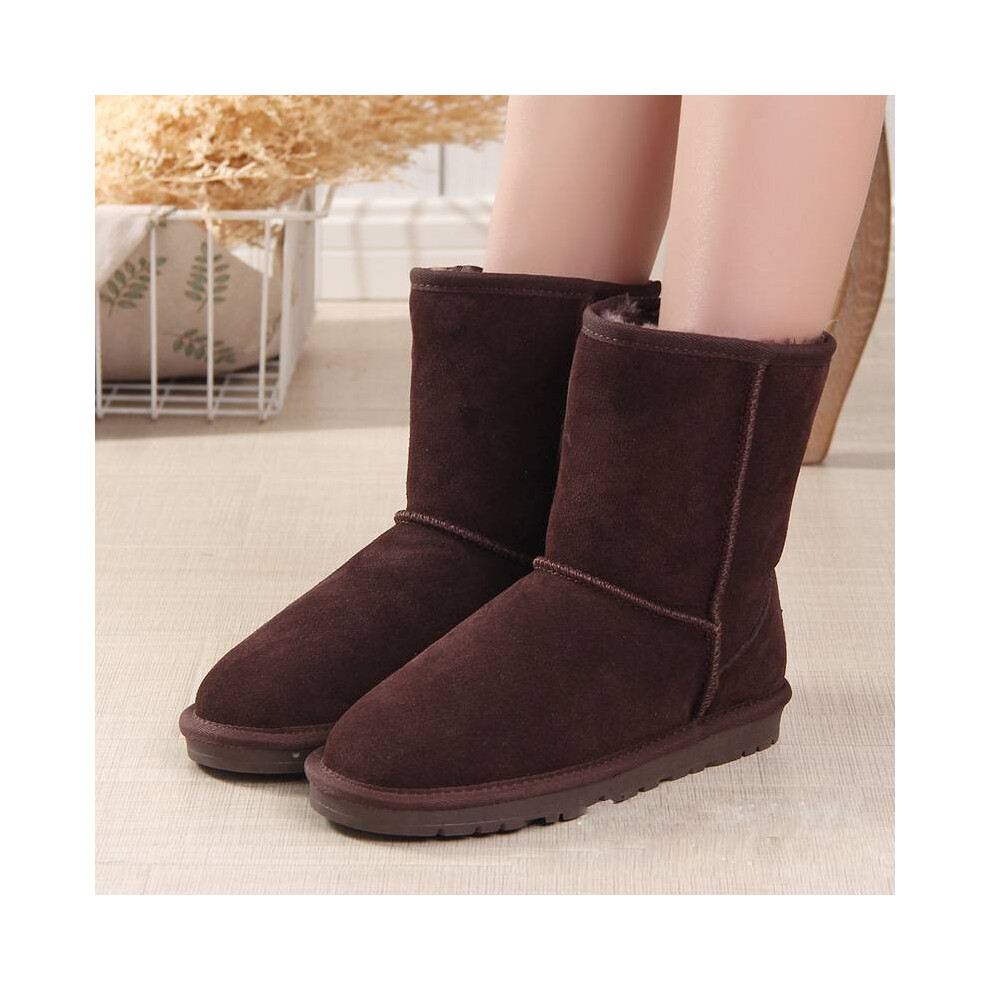 (Brown, Length26cm/10.24in) Winter Men Womens Platform Warm Comfortable Fur Leather Snow Boots Sheepskin
