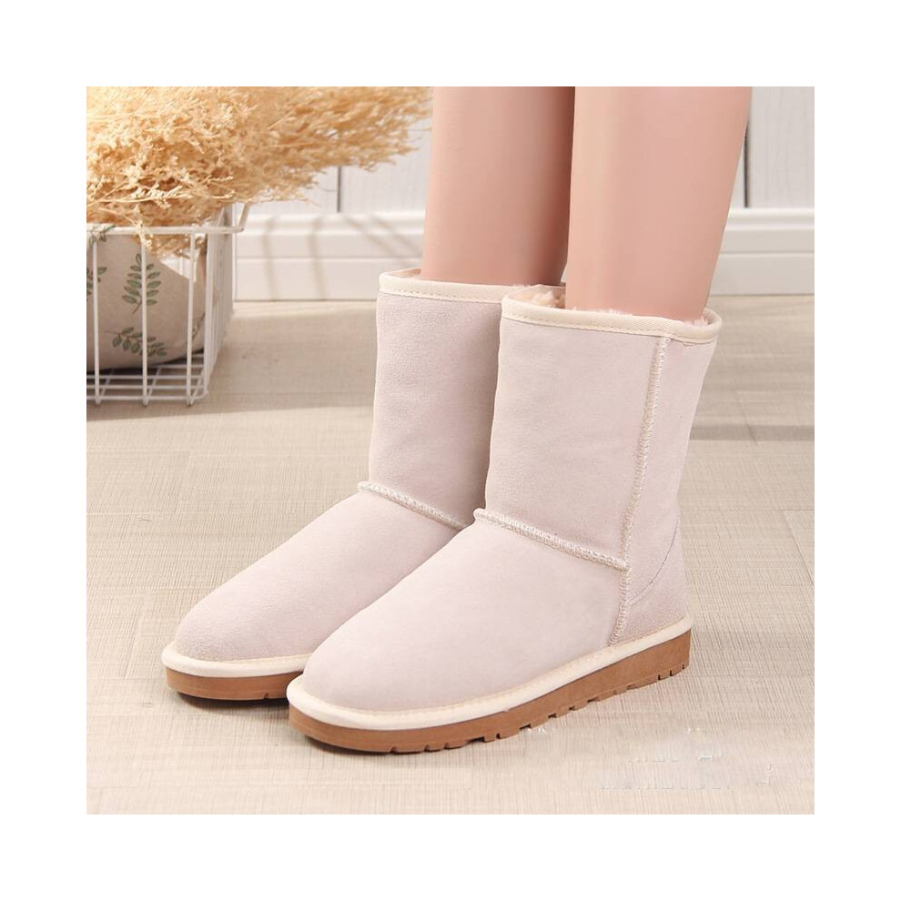 (Pink, 37Foot Length23.5cm/9.4in) Winter Men Womens Platform Warm Comfortable Fur Leather Snow Boots Sheepskin