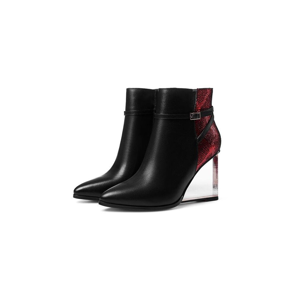 Size 33-42 Cow Leather+Sheepskin Ladies Ankle Boots Transparent Wedges Heels Autumn Boot Pointed toe Buckle Shoes Woman