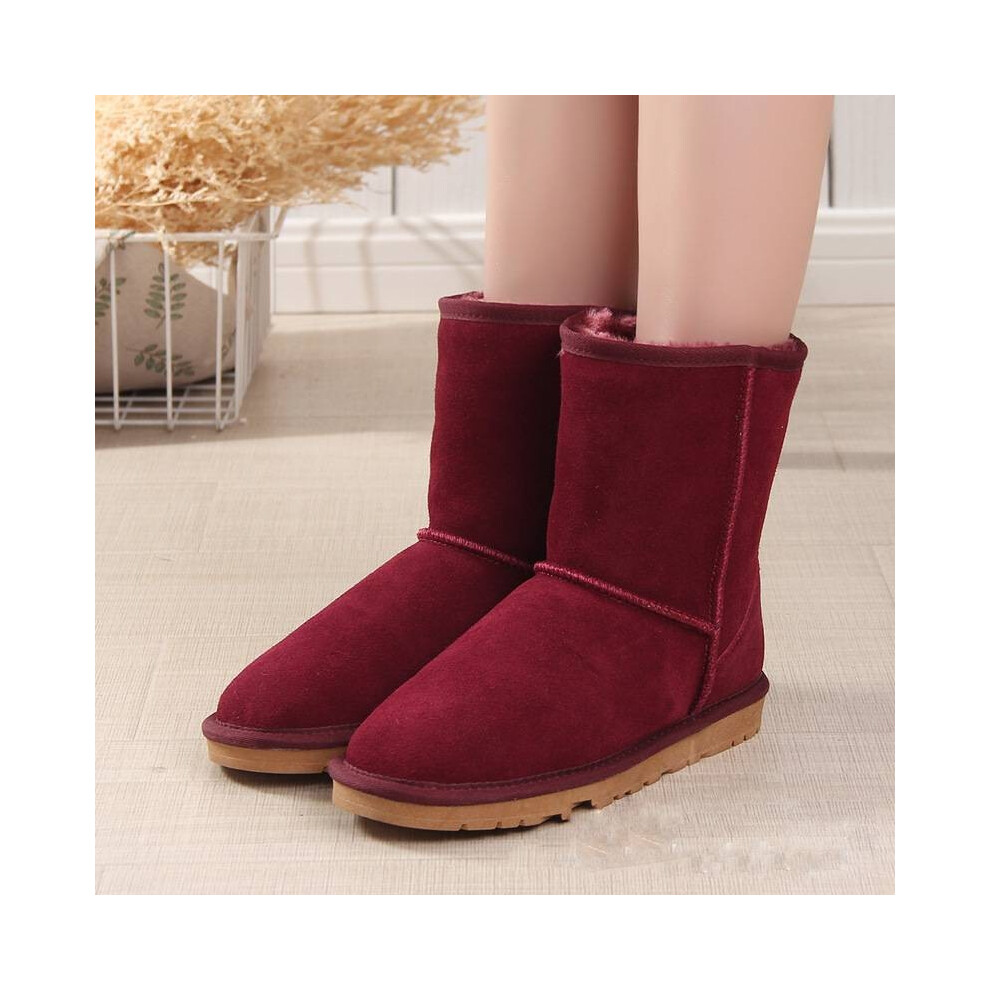 (Red, 6 (Adults')) Women Winter Fur Leather Sheepskin Snow Boots Shoe