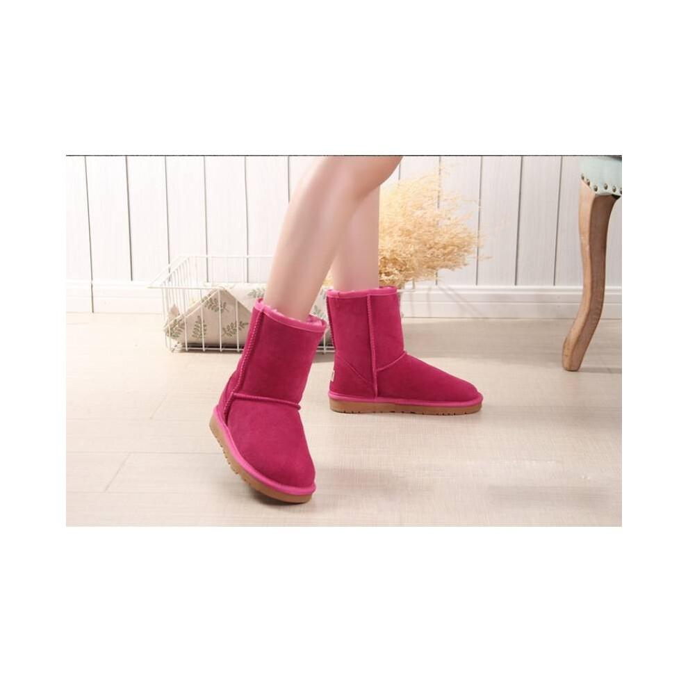 (Rose Red, 38Foot Length24cm/9.6in) Winter Men Womens Platform Warm Comfortable Fur Leather Snow Boots Sheepskin