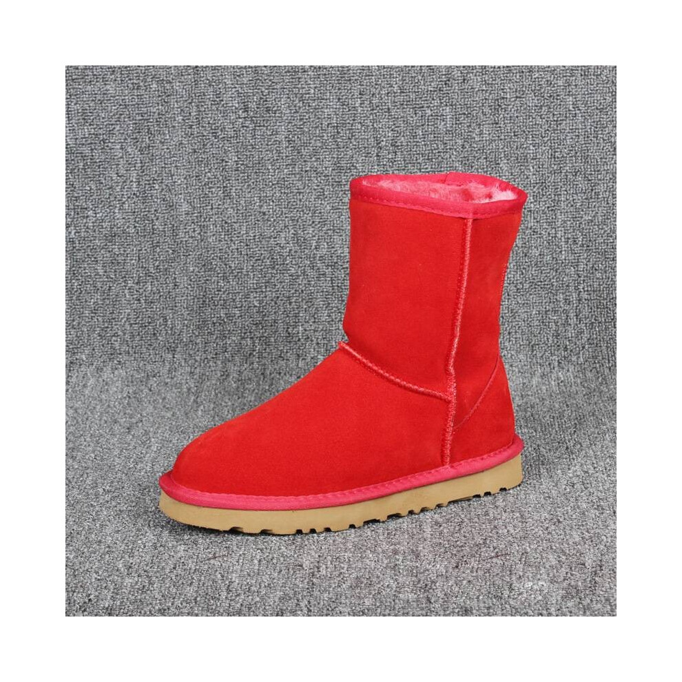 (Red, 5 (Adults')) Women Winter Fur Leather Sheepskin Snow Boots Shoe