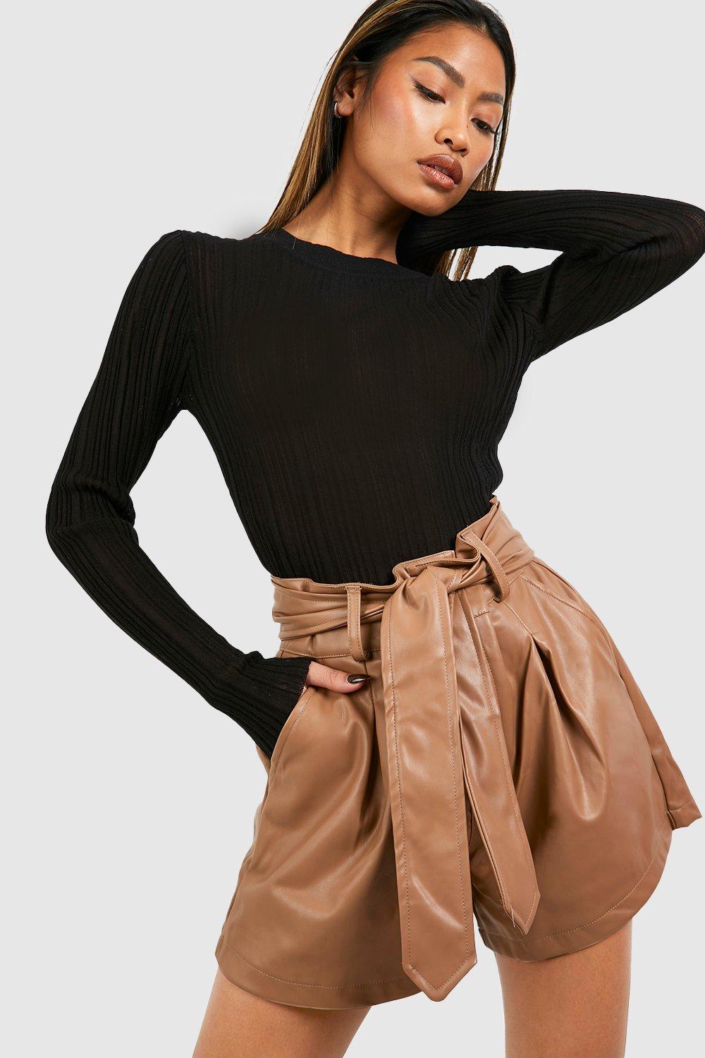 Petite Tassel Detail Faux Leather Shorts