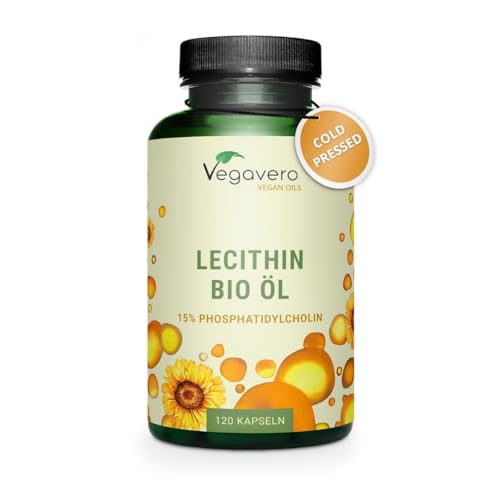 Vegavero Organic Lecithin Oil 1800 mg | Highly Dosed | Sourced from Sunflowers | 120 Capsules | NO Additives | Vegan | 15% Phosphatidylcholine