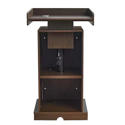 Vyntyra Classic Lectern Stand, Multi-Functional Wooden Podium, Double-Layer Storage Cabinet, and 360° Swivel casters with Lockable Upright Lectern(Walnut)