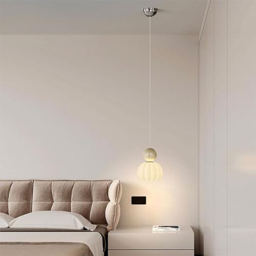YCVAWEOD Small Chandelier Glass LED Bedroom Resin Pendant Lamps Cream Single Head Pendant Lights Living Room Droplight, Ceiling Light LWX