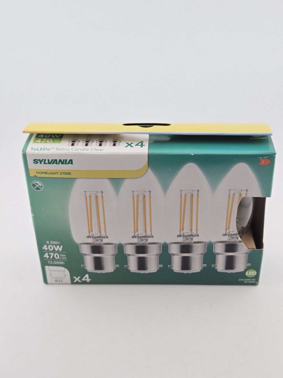 Sylvania ToLEDo Retro Candle LED Bulbs B22 Bayonet Cap 4.5W = 40W Warm White