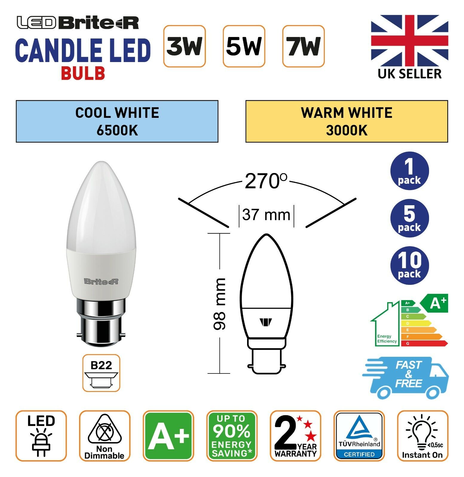 5/10x LED Light Bulbs B22 Bayonet E14 E27 Screw Candle 3W 5W 7W Warm Cool White