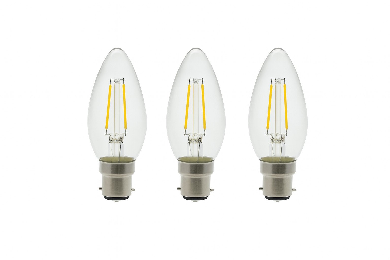 3x LED Candle Bulbs B22 Bayonet 4W Filament Warm White 400lm Energy Saving