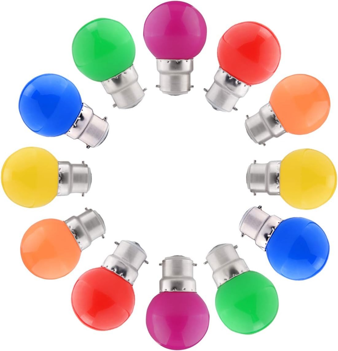 12 Pack LED Light Bulbs B22 Bayonet Multi-Colour Party Christmas Decor 1.5W