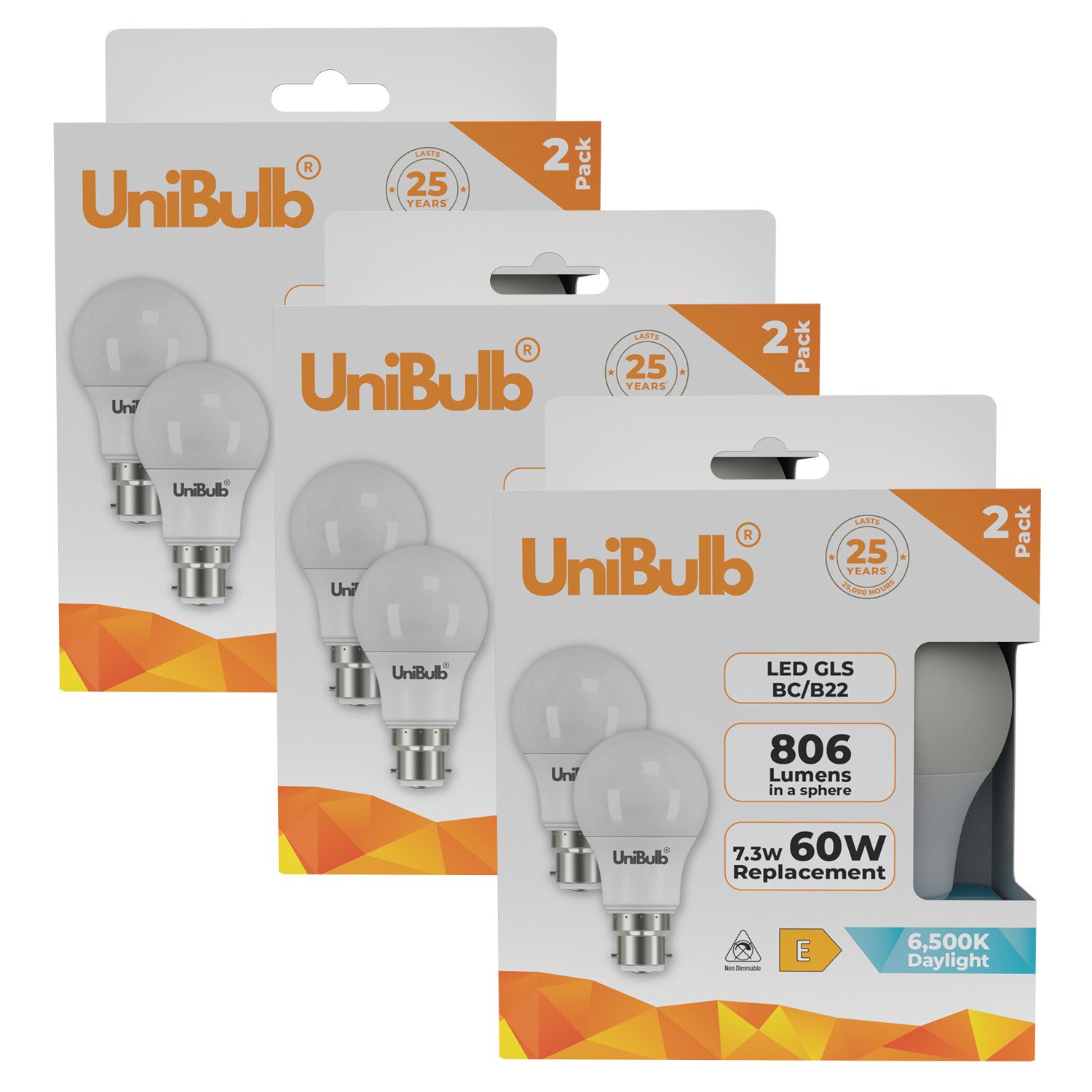 6 Pack UniBulb GLS B22 LED Bayonet Bulbs Warm White for Hallway Fixtures