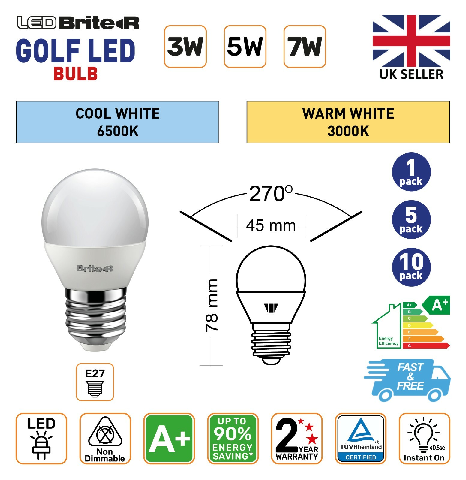 5/10x LED Light Bulbs B22 Bayonet E14 E27 Screw Golf 3W 5W 7W Warm Cool White A+