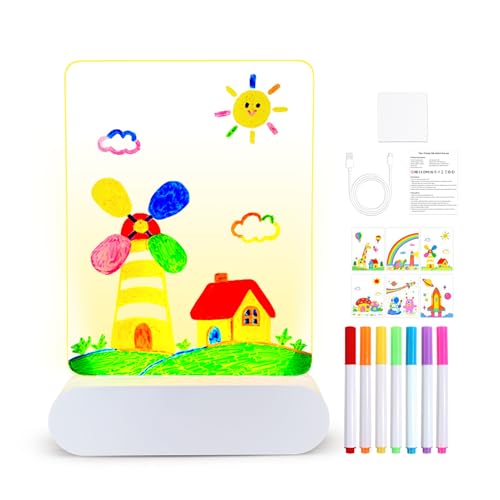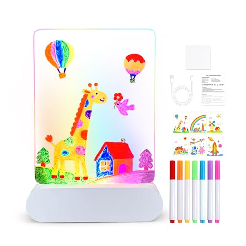 LED Drawing Board for Kids - 3D Glowing Writing Tablet with 7 Markers, Rechargeable Acrylic Dry Erase Pad, Light Up Doodle Art Easel for Boys Girls Birthday Gift, Educational Travel Toy