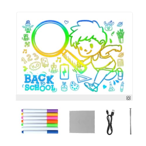 Generisch LED Drawing Board for Children, Luminous Dry Erase Notice Board, Doodling Tool with 7-Colour Pens for Meeting Notes, Study Schedules, Family Event Coordinators, Teachers, Students K