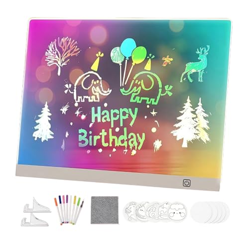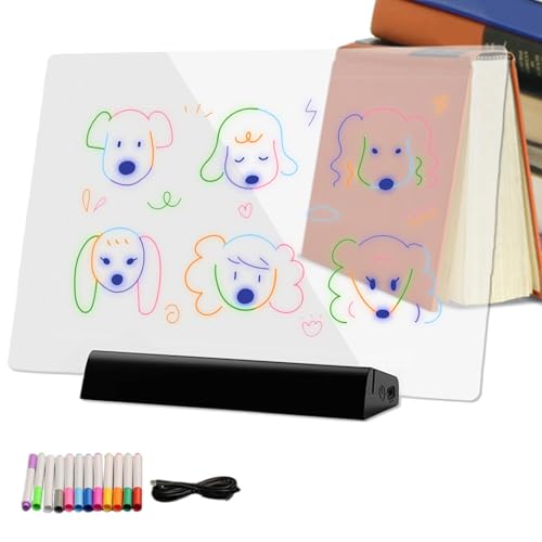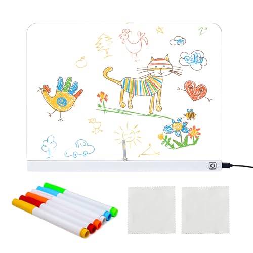 LED Drawing Board - Illuminated Drawing Screen, LED Message Board in Acrylic Rewritable - USB Powered Dry Erase Pads with Colours for Writing, Tracing