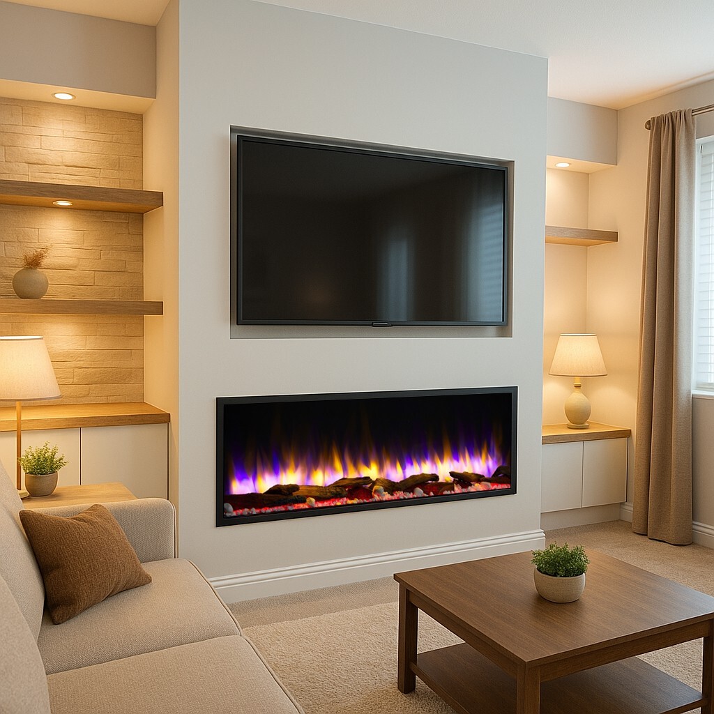 Media Wall Inset Electric Fire 3D Fuel Bed & LED Flames - Endeavour New Hawnby