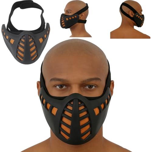 Zhongren LED Cyber Punk Face Mask Cosplay Half Face Masks Demon Cyberpunk Light up for Halloween Party Costume CS Airsoft Tactical Outdoor Games