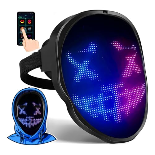 Fockety LED Face Mask, Programmable Light Up Transforming Mask with, App Control and 115 Patterns, for Halloween Cosplay Parties and Costume Events