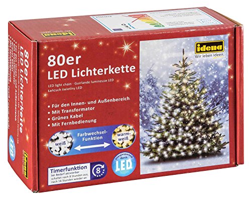 Idena LED Fairy Lights for Indoor and Outdoor Use with Timer, Copper PVC, Weiß und Warm Weiß, 80er