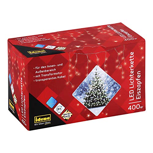 Idena 31819 LED Fairy Lights Icicle for Indoor and Outdoor Use 400 Pieces with Timer Warm White