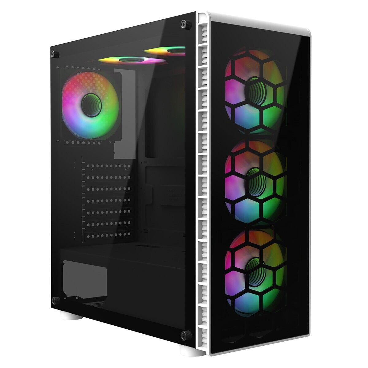 Gaming PC Computer Case 6x ARGB LED Fans Mid Tower ATX Tempered Glass Panels UK
