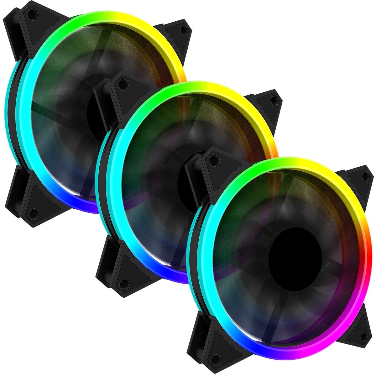 Rgb Case Fan 120mm 3pin Molex Colorful Fluid Bearing LED PC Computer Cooling Fans Radiator Ventilador 12V (Blade Color : 6Pcs RGB-2 Ring Lamp)