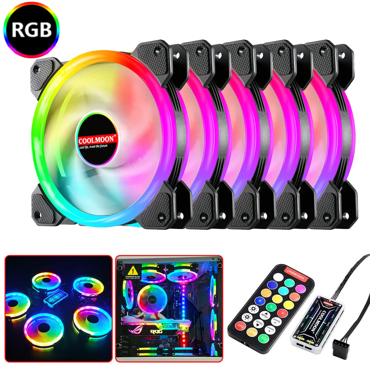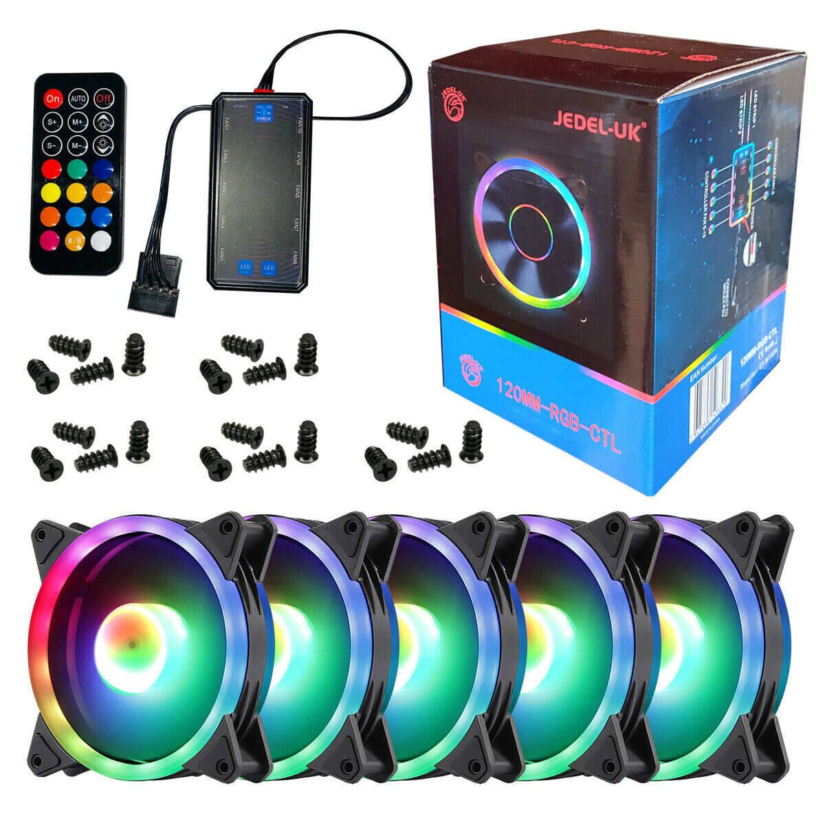 Onewatt DS 120MM RGB Case Fan Light, LED Silent Fan for Computer Cases, PC Case, CPU Coolers (2pcs LED Strip, 5pcs LED Fans, F Series)