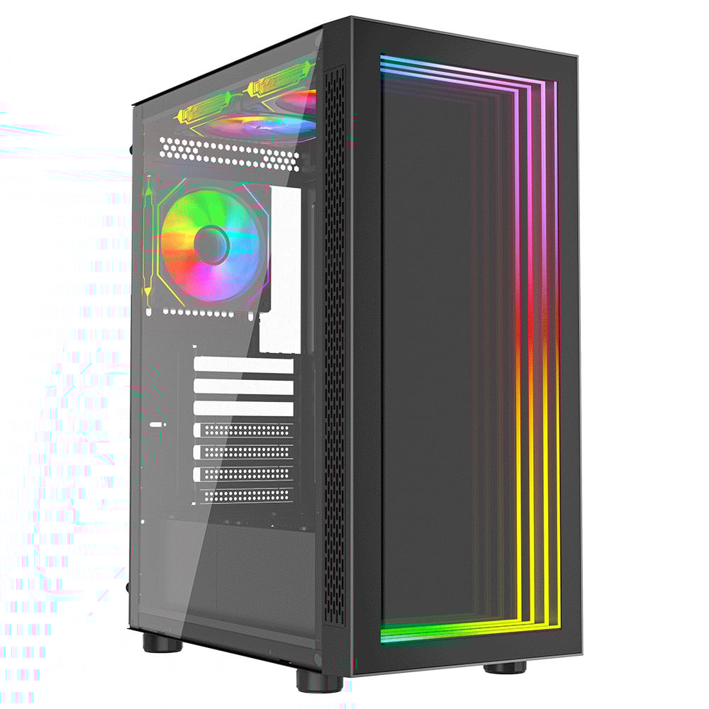 Apeiron ATX Gaming PC Case Mid Tower 3x 120MM ARGB Infinity LED Fans Glass Panel