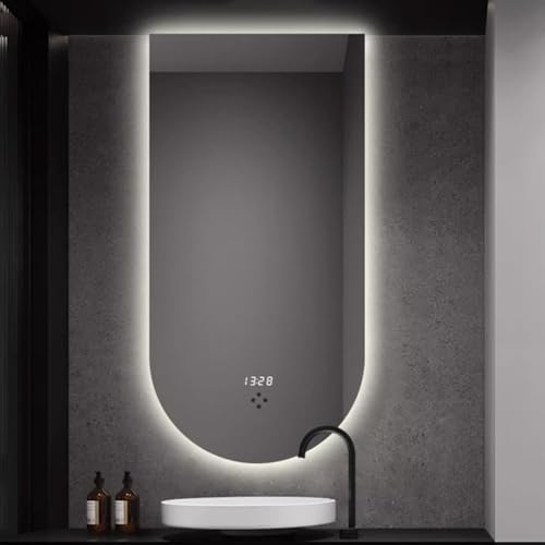 Zhoudong 24"×48" Dimmable LED Vanity Mirror with Touch Switch, 20"×40" Arched Mirror for Bathroom Wall, 3 Colors Backlit Light, Anti-Fog, Shatter-Proof(Cut right,50 * 80cm)