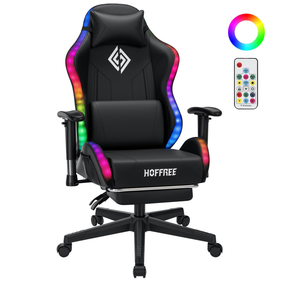 ELFORDSON RGB LED Gaming Chair with 8 Massage Points, Ergonomic Computer Office Chairs with Headrest, Lumbar Support, Footrest, High Back 150° Reclining, 360° Swivel, PU Leather, Black
