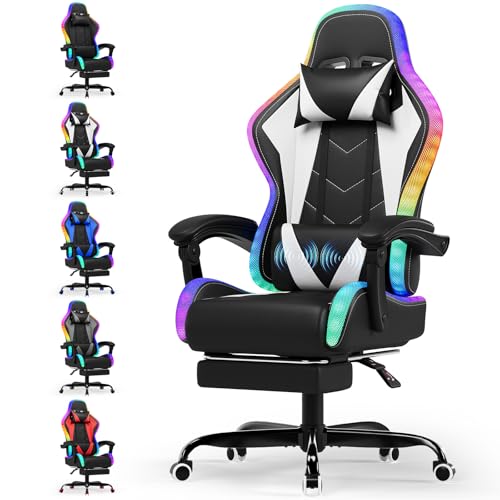 Gaming Chair and RGB LED Lights, Ergonomic Computer Chair with Bluetooth Compatible Speakers, Height Adjustable Massage Computer Chair, Video Game Chair, High Back