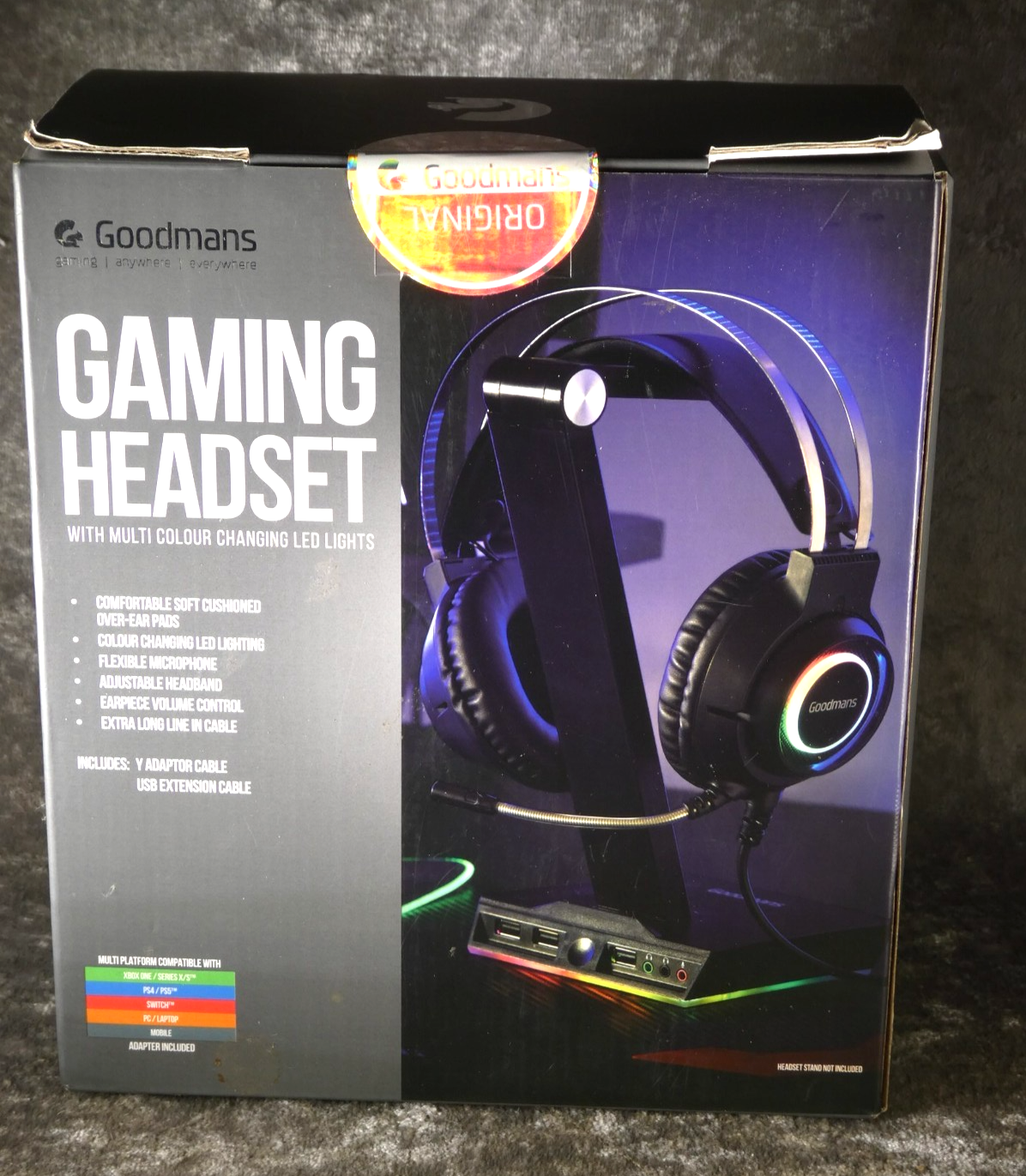 Goodmans LED Gaming Headset Mic Stereo Wired Line In Xbox PS4 PC Switch