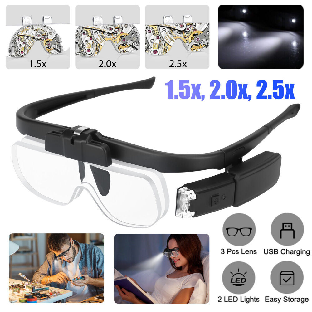 Magnifying Glass Headset LED Light Head Headband Magnifier Loupe Jeweler w/Lens