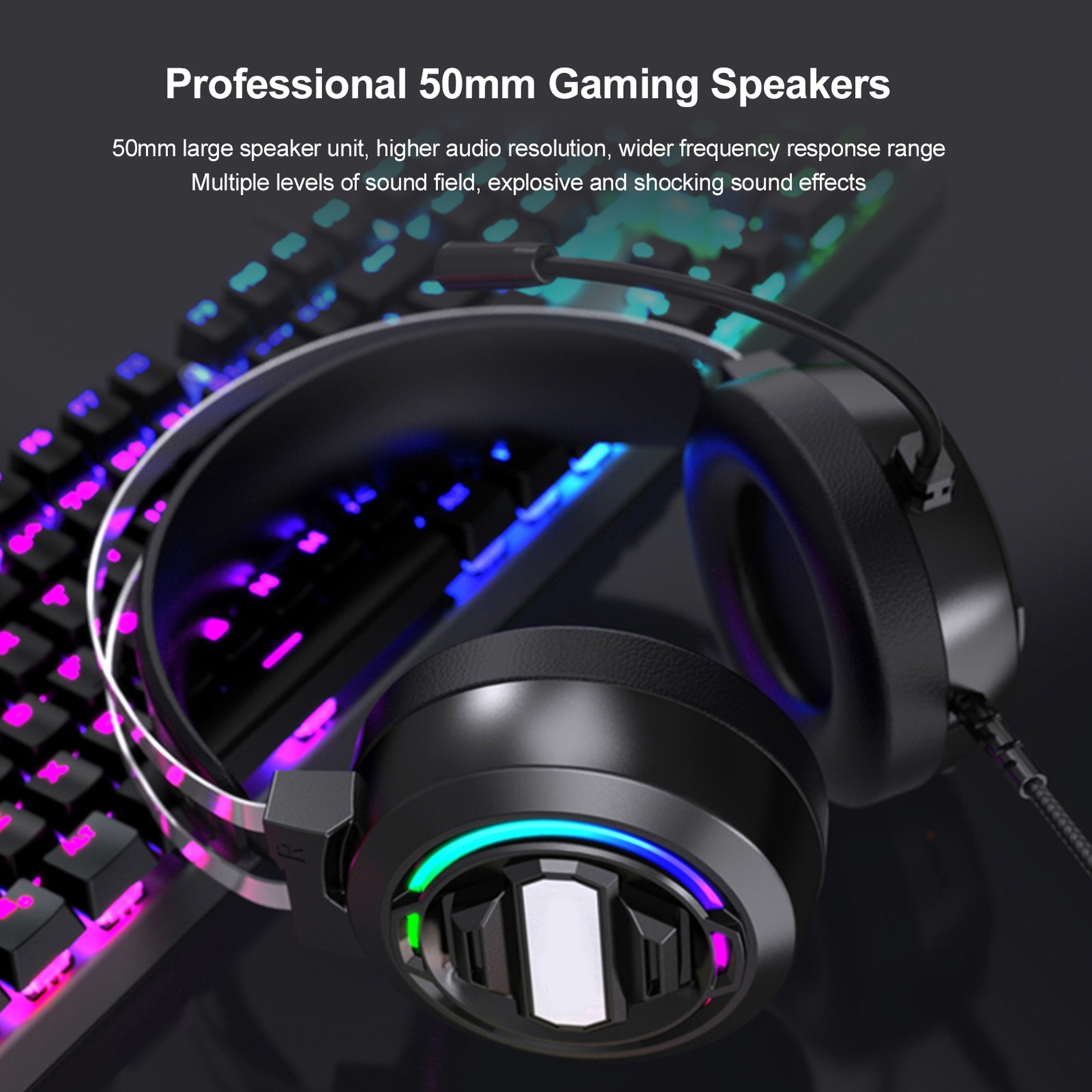 HT401 USB Gaming Headset LED Light Noise Cancelling Mic Adjustable Headband
