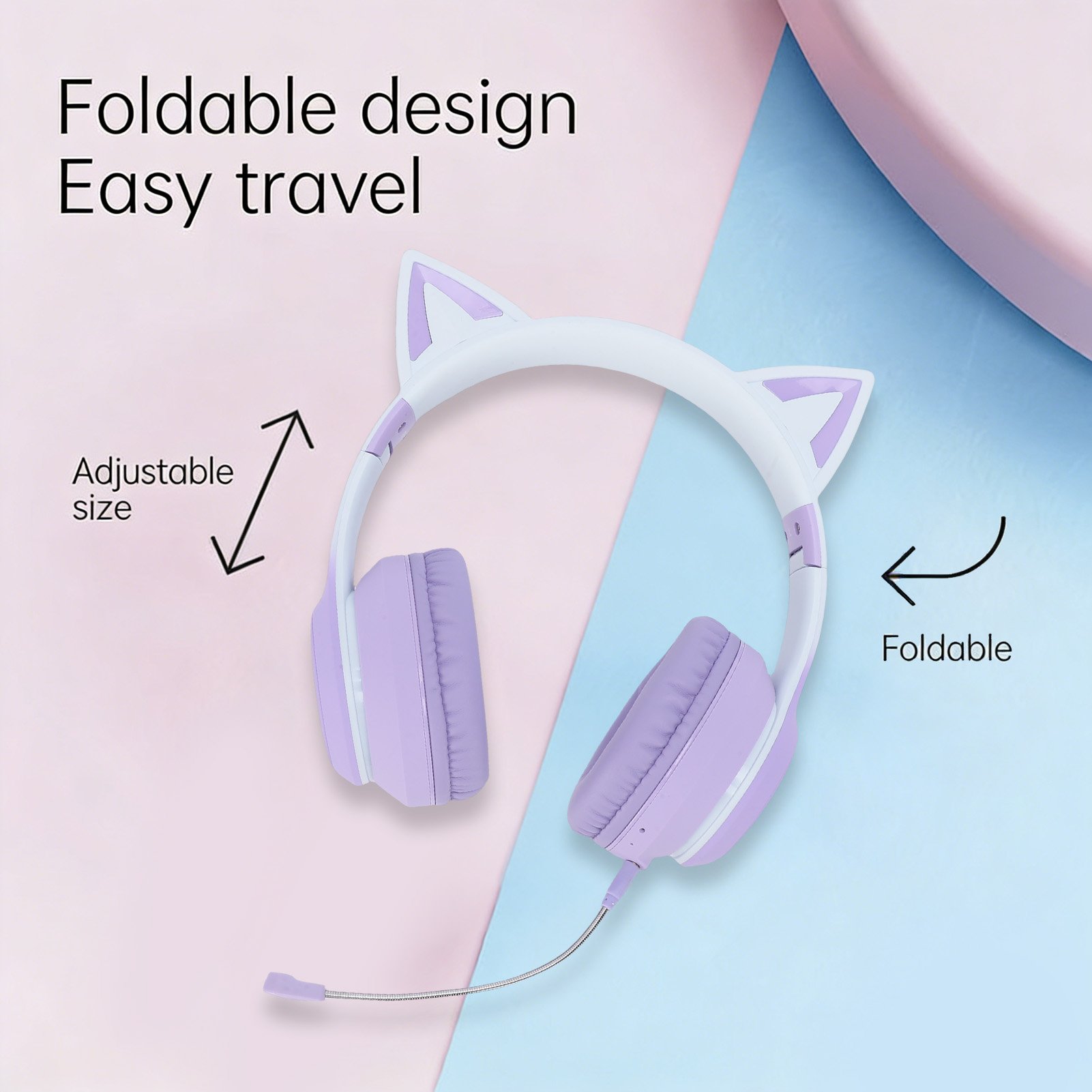 ¸LED Noise Cancelling Headset Cat Ear Shape BT 5.0 Headset With Microphone For
