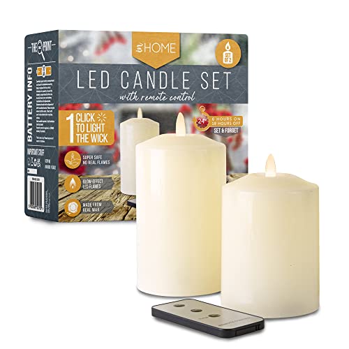 iN Home LED Candles Flickering | LED Candles Halloween | Electric Flameless Candle with Remote Control – Battery Operated (Set of 3)