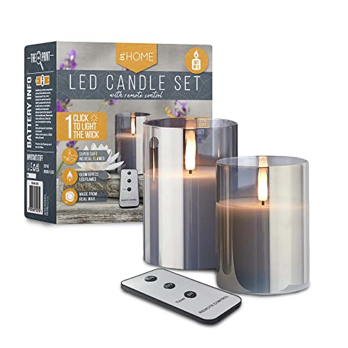 iN LED Candles | LED Candles Flickering | Grey Reflective Glass | Electric Flameless Candle with Remote Control - Battery Operated (Set of 2)