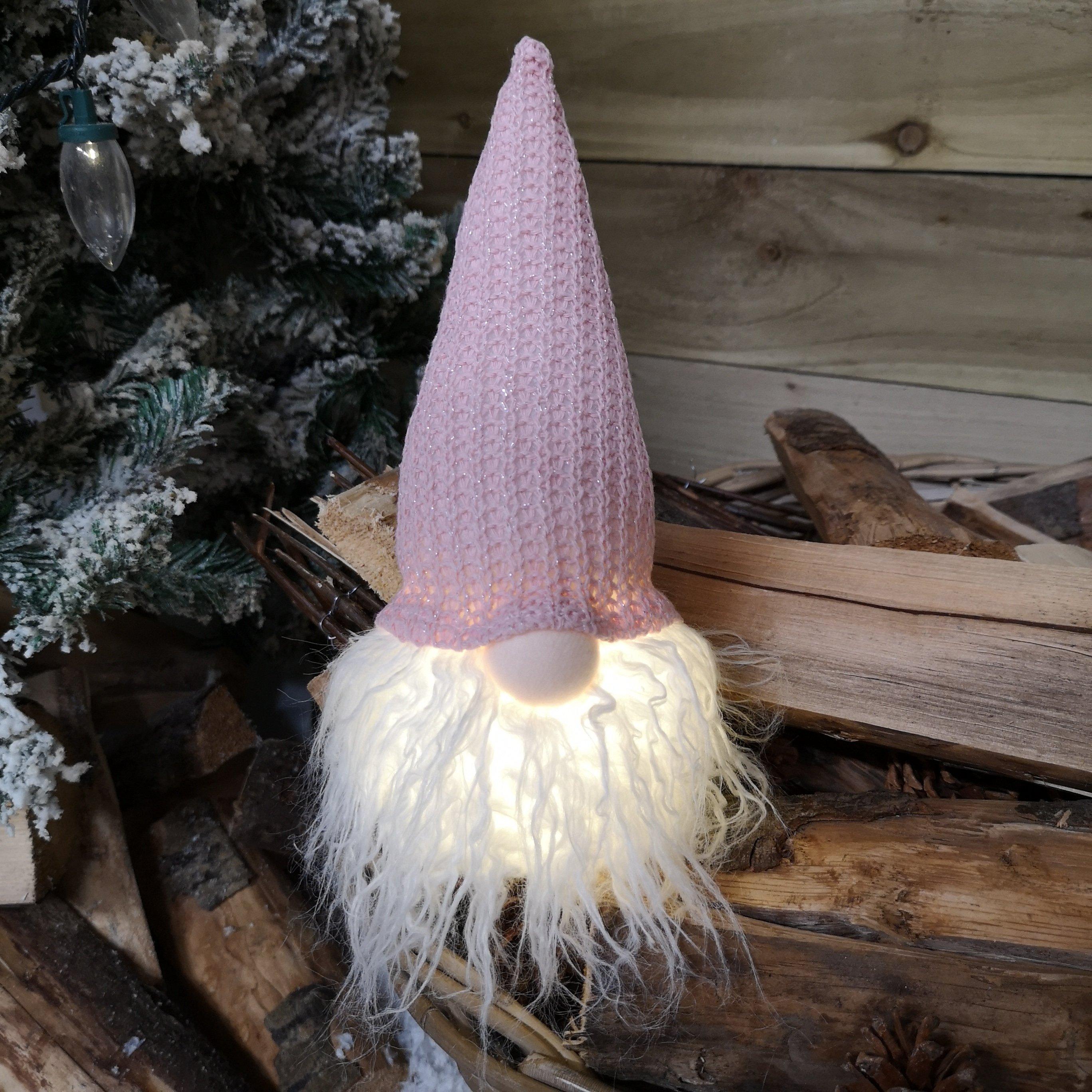 28cm Battery Light Up LED Plush Christmas Gonk Decoration in Pink Hat