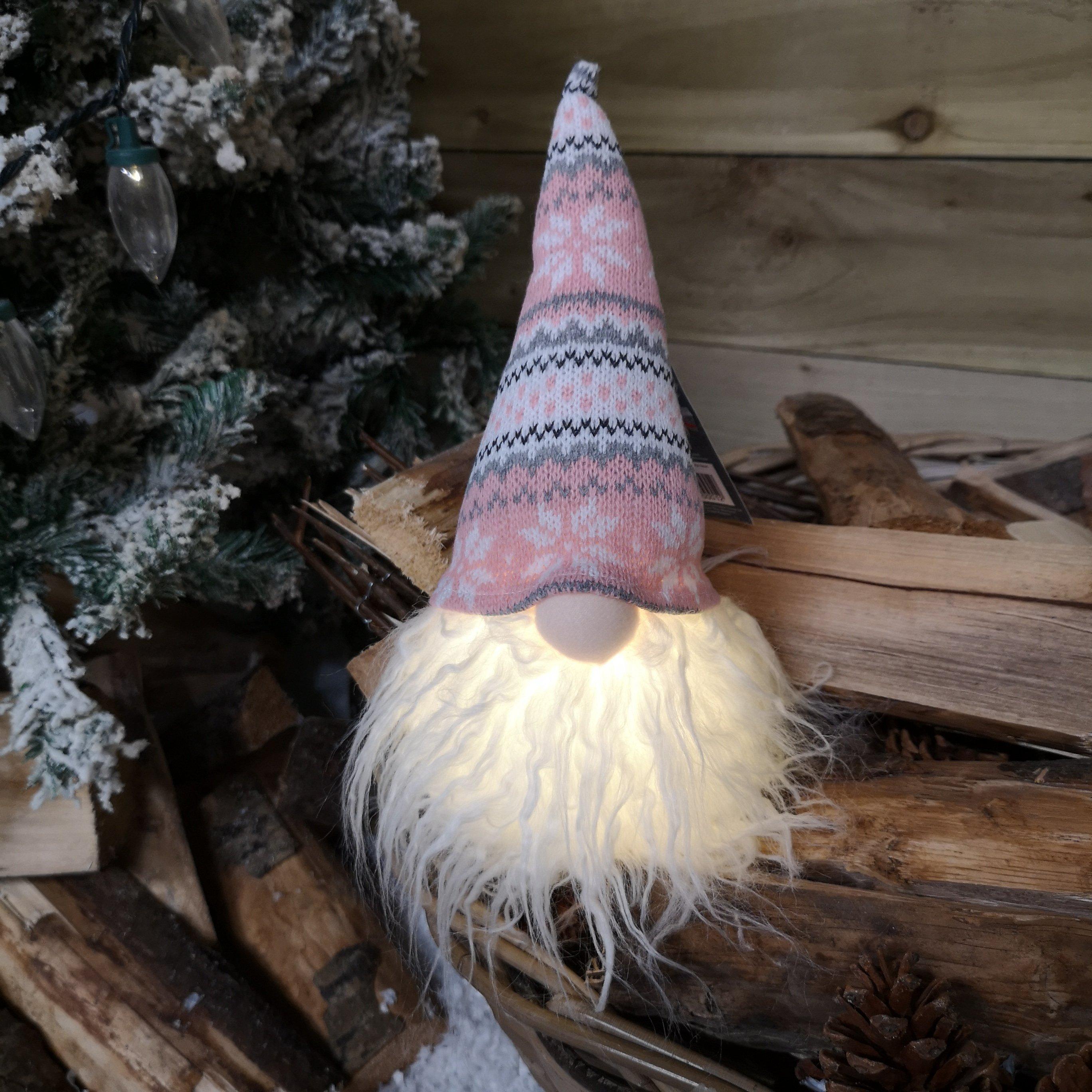 28cm Battery Light Up LED Plush Christmas Gonk Decoration in Pink Patterned Hat