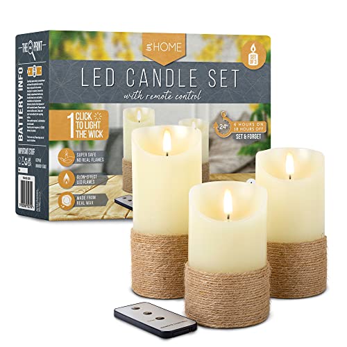 iN LED Candles | LED Candles Flickering with Rope Design | Halloween | Electric Flameless Candle with Remote Control Battery Operated – (Set of 3)