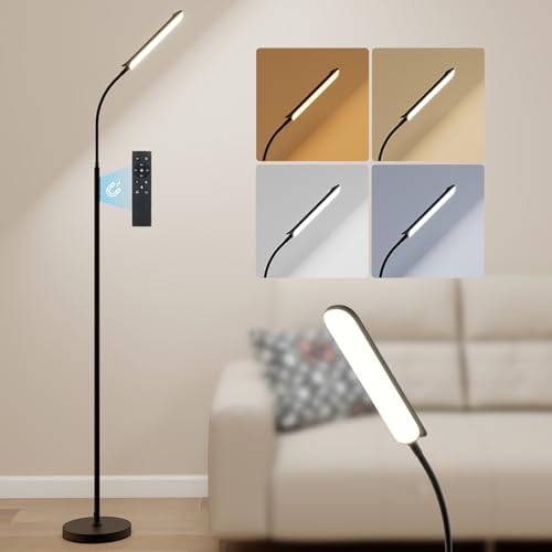 ZealWe Floor Lamp, LED Floor Lamps with for Living Room, Standing Reading Tall Lamp with Adjustable Gooseneck, Remote, 4 Colour Temperature Brightness, Black