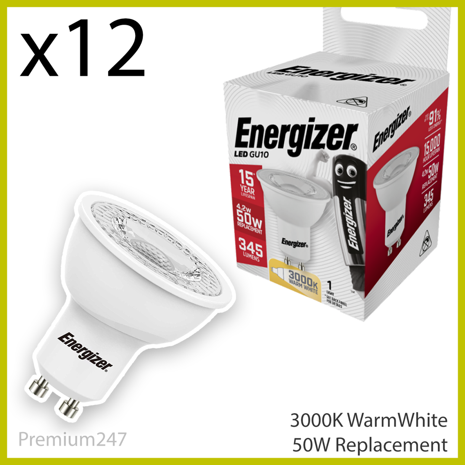 12x Energizer GU10 LED Bulbs 4.2W=50W Spotlight Downlight Lamps Warm White UK