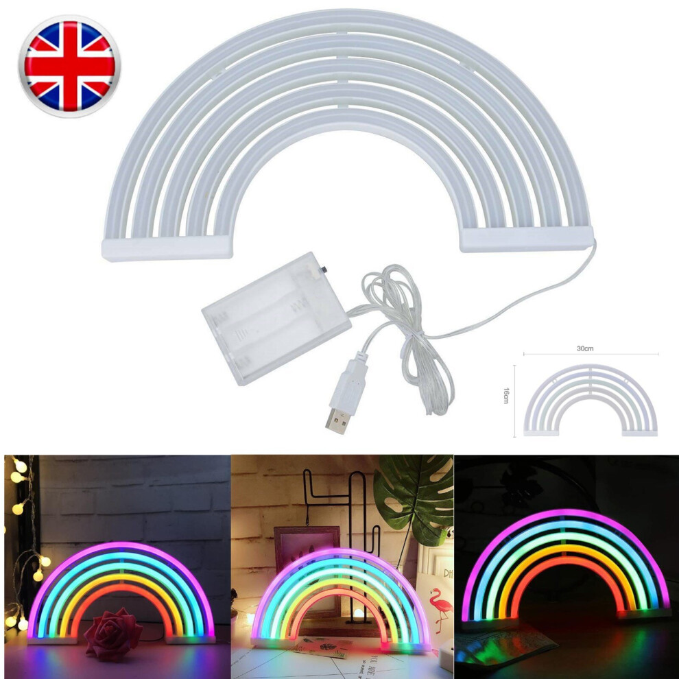 Rainbow Neon Sign Colorful LED Wall Lamps For Children Room Night Light Decor UK