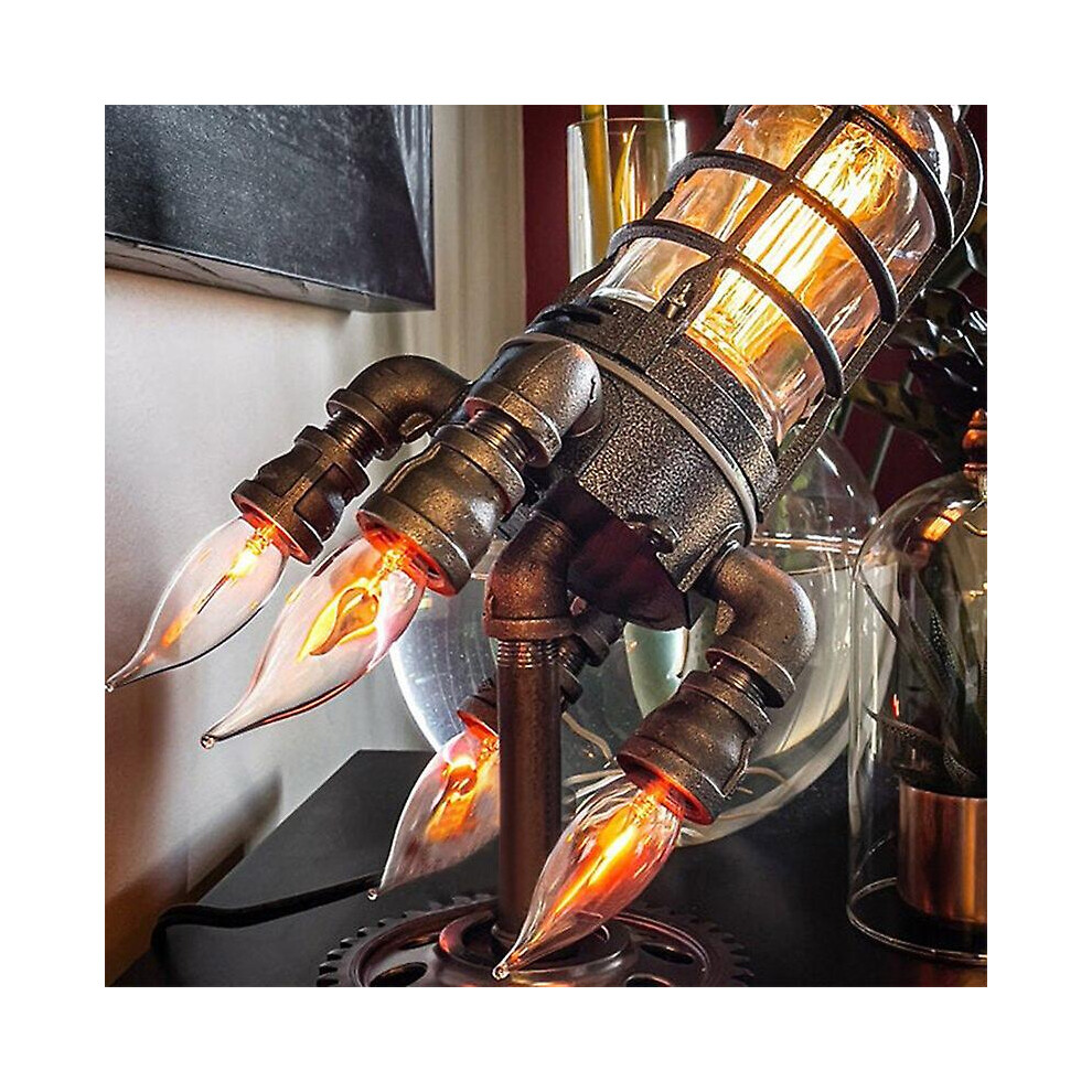 (UK Plug) Vintage Steampunk Rocket Table Lamp Flame Night Light For Bar Store Desk Decor Lighting Fixtures Creative Led Standing Lamps E26