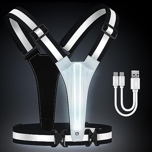 Fokia Kunbio LED Reflective Running Vest Gear,Light Up Vest Runners Night Walking USB Rechargeable,Up to 11hrs Light with Adjustable Waist/Shoulder for Women Men Kids