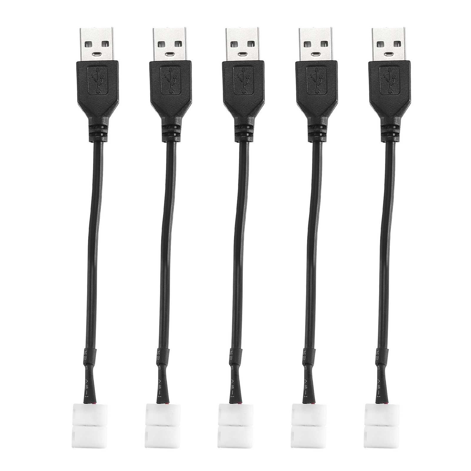 5Pcs LED Strip Light Connector 2 Pin 8mm Solderless Connector to USB Cable 150mm